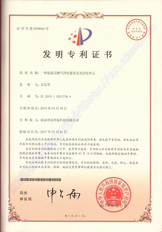 發(fā)明專(zhuān)利(逆流式煙氣凈化裝置)
